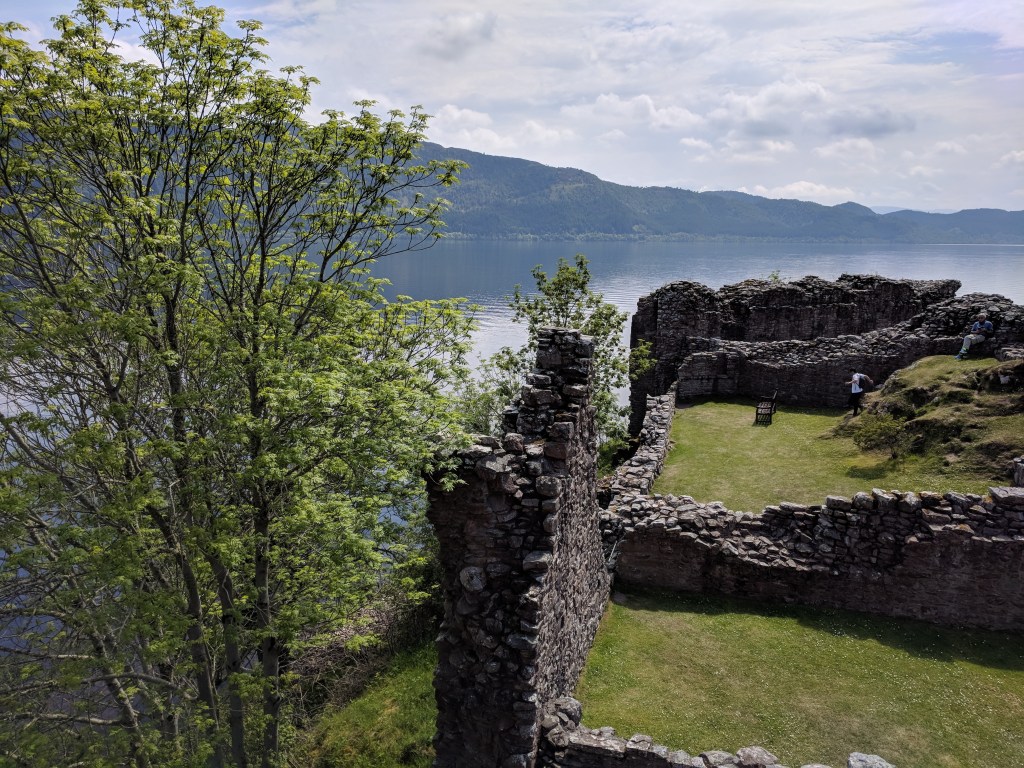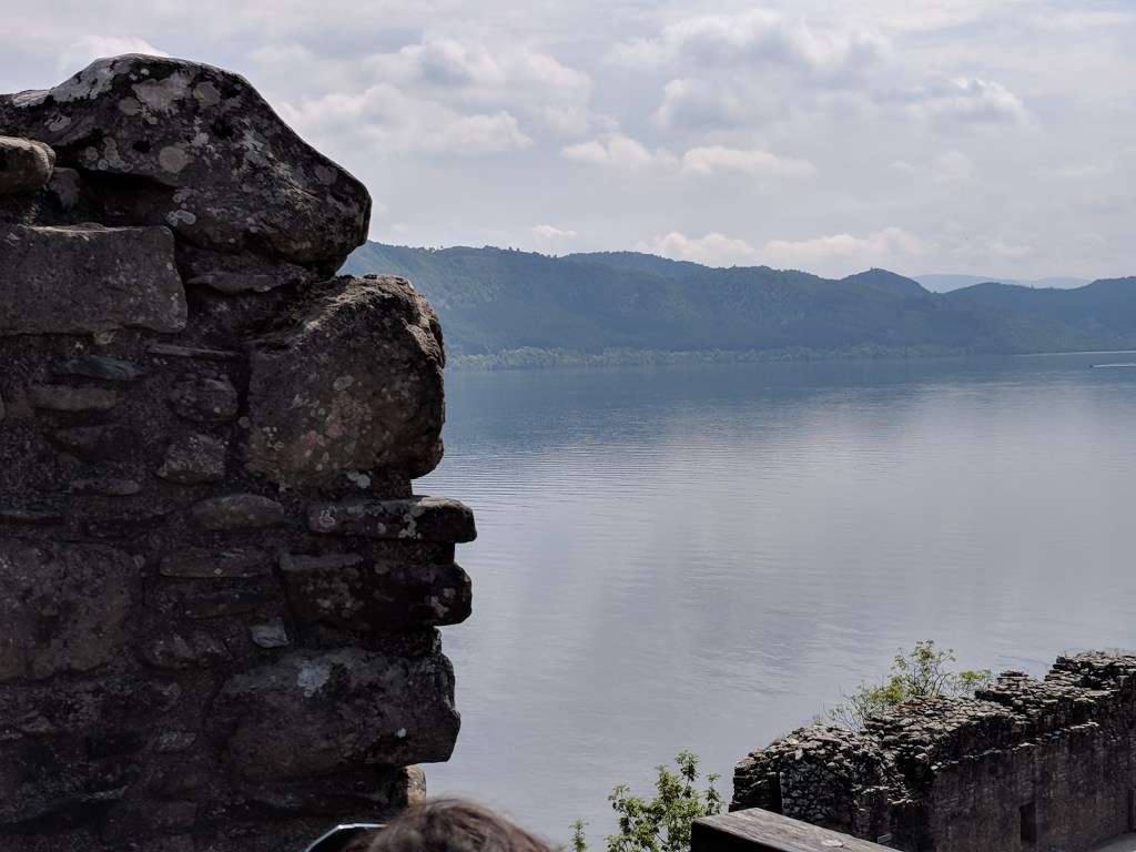 We went monster hunting today. We traveled north from Edinburgh into the Scottish Highlands. The flat lands and small rolling hills with the perfect climate for farming crops have transformed into the higher rolling hills with so much moisture that regular crops cannot be grown. Farmlands change into ranch lands dotted with hundreds of sheep. There were 5.3 million people in Scotland in 2016. There were 6.8 million sheep. There are also beautiful long haired, long horned cattle. These butterscotched colored animals are friendly but clumsy. It’s a good idea not to get too close, or they may begin swinging their head…more dangerous than a dog wagging its tail across the coffee table.
