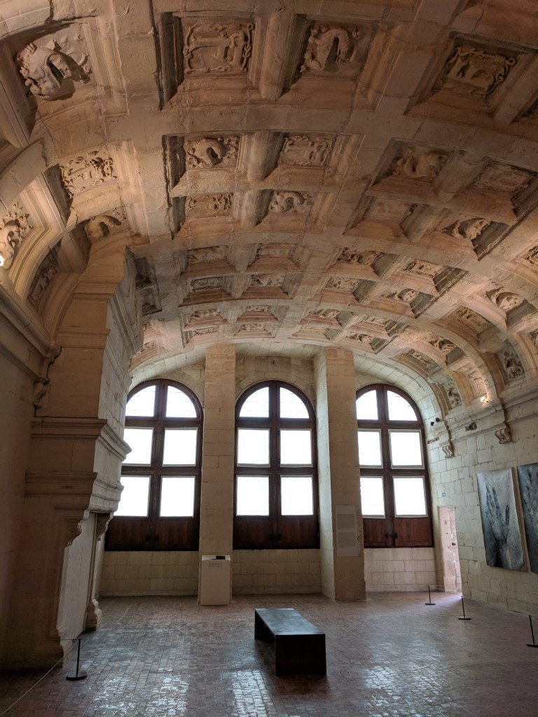 The chateau is built in the Renaissance style. It has beautiful gardens, and a look over every wall yields views of either the beautiful Loire River, the French countryside, or the quaint little village below. Its entrance makes the king’s nomadic lifestyle a little easier, in that it is actually an incline instead of steps. It’s even wide enough for a whole horse drawn carriage so the servants don’t have to carry everything from the ground level. This also worked well if the chateau was under siege.