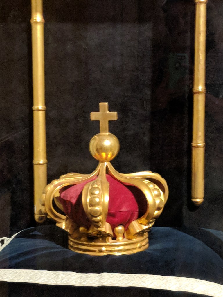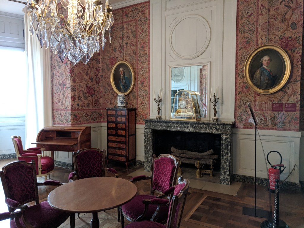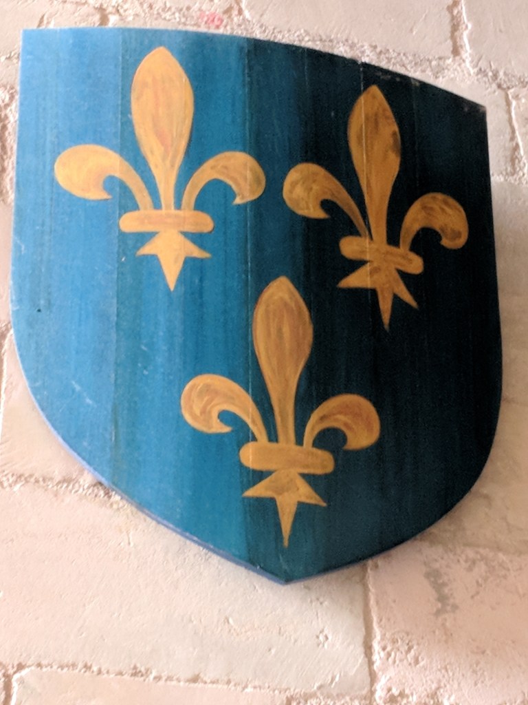 In this castle, we learned about the fleur de lis (pronounced floor de lee). It is three petals of a golden lily on a background of blue, and only royalty was allowed to use it. We see it all over New Orleans, and it is used on a black background as the Saints NFL team logo. Once we learned about this symbol of royalty, we started seeing it everywhere! We even watched a sports announcer commentate the World Cup from a fleur de lis shaped desk!