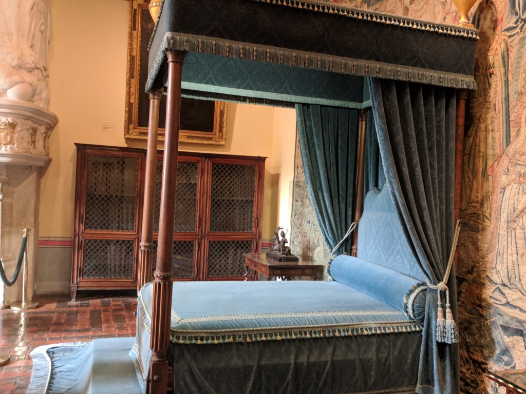 Catherine took over Chenonceau and immediately painted her own bedroom completely black as she mourned the loss of her husband…and probably a life of regrets. Only two out of eight of her children had survived infancy, and especially since her husband had sought the love of another, she assumed she had been sexually inadequate. She was nicknamed The Black Queen, but there is a question whether it was because of her darkened bedroom, the dark life she was forced by happenstance to lead (you’ll have to research those details for yourself) or because of the dark arts she had practiced throughout her life.