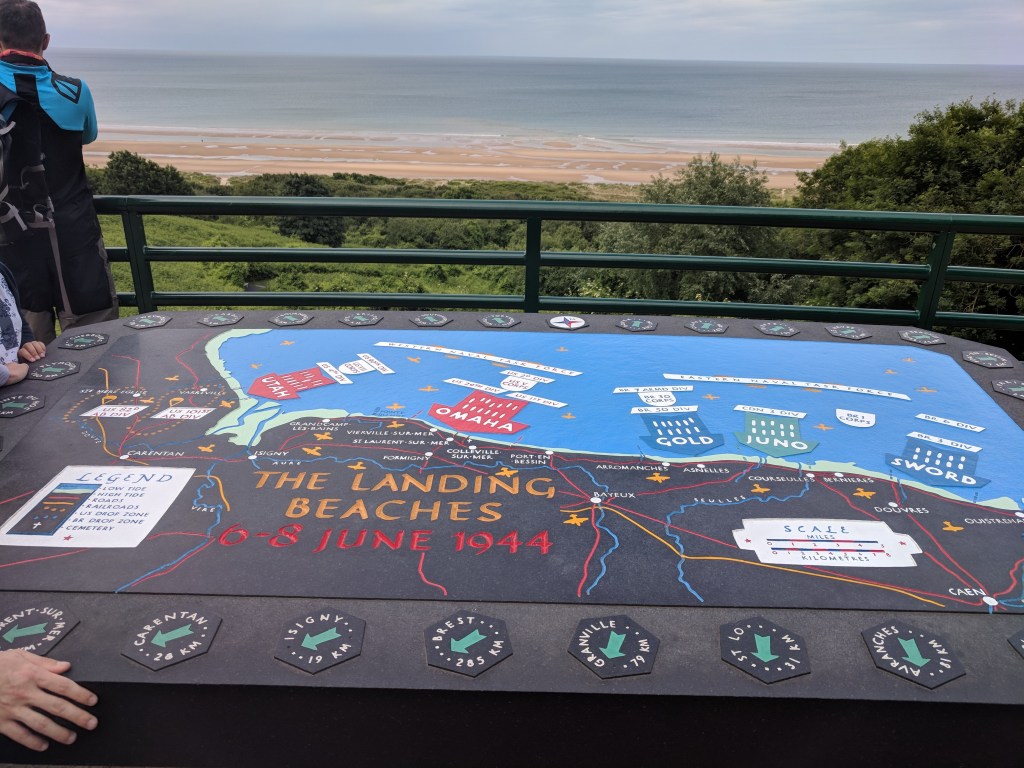 We stormed Normandy on Day 21 at 1630. Okay, really we took a train to Caen, rented a car, and drove into Northern France, where we discovered two beaches of Normandy. This is the first car we’ve rented on our whole trip, and I’m glad most places we visit have public transportation. Bill said he would tell that tale, so I’ll leave it unsaid for now.