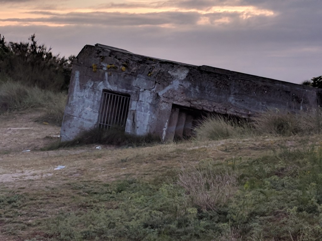 After dinner, we decided to go for a walk on the beach behind the restaurant. It turned out to be Juno Beach, another beach taken by the allied forces in World War II. Bonus! There were German bunkers everywhere. The soldiers called them pillboxes in all the novels I’ve read about World War II, so I had the impression of a little foxhole. These were not foxholes. They were cement buildings, dug under the sand, with several separate rooms and enough space to hold 20 German soldiers! Here, there was yet another war memorial, this one overseen by the Cross of Lorraine, a Christian cross designed by the French and claimed as the symbol for the French Free Forces led by Charles de Gaulle. You may recognize that name, as the busiest airport in Paris is named after him.