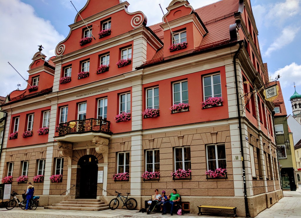 Our train broke today, so now we’ve experienced everything. We were supposed to take a train from Salzburg, Austria to Ulm, Germany and then transfer to a train to Memmengen. But the train stopped at Munich and said it was having difficulties and would “terminate” at Munich. Thank goodness for the Google Maps and Eurail apps. Bill quickly rerouted us to Bledsoe, Germany, where we hopped on a bus going to Memmingen. I guess we should have flown there because had three problems: First, we’re in a much less populated part of Germany and therefore cannot get public transportation wherever we want to go. We could walk around town easily enough, but of course, we wanted more. Second, there were no car rentals at the train depot. Third, there was no public transportation from the train depot to the airport, where we could rent a car. We finally settled on walking to the hotel, offloading our bags, and having them set up a taxi for us. We got a car, parked it at the hotel, and walked around the entire city. Then we were ready for our trip to meet our friend Curtis in the morning and check out a castle!