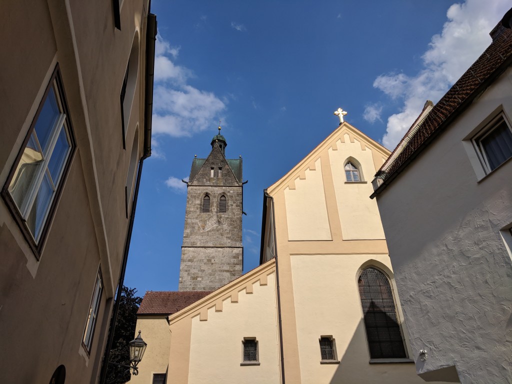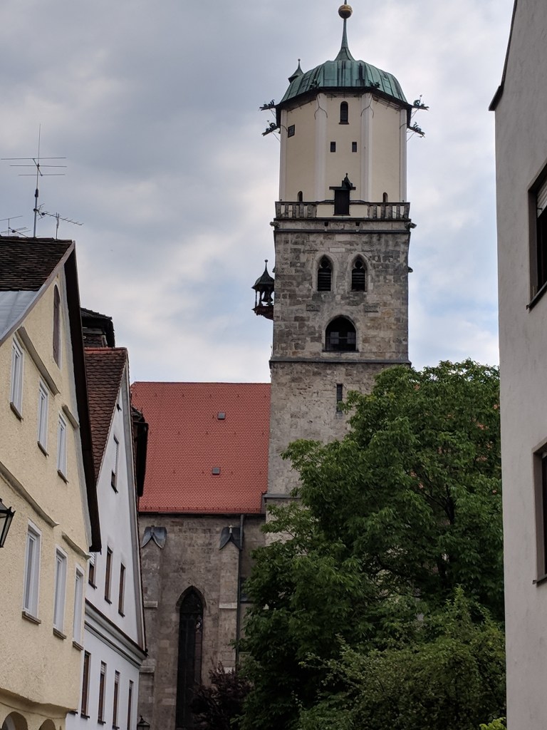 Memmengen is a small city that still has almost its entire original city wall from the 1400s. We started on our walk, which is usually just a several mile wander around a city, and we happened upon a city sign. It explained that we could take the red route to follow the entire wall around the city, along with some of the architecture, or we could go beyond that follow the green route to see the wall, architecture, canals and parks. Of course, we chose the green route. It was a beautiful walk, and it was fun to see the wall that had been built 600 years ago, take pictures of the churches, towers, canals, and even part of the moat that has been turned into a park with slides and chain link stairs. They’ve done a beautiful job of moderinizing while still maintaining the ancient appeal. Sadly, we can’t drink out of the fountains here, and we had long ago drained our water bottle, so we had to stop midway at a Biergarten and have a beer. We’re in Germany, so we found one of those every couple of blocks. Don’t worry. We only stopped at one.