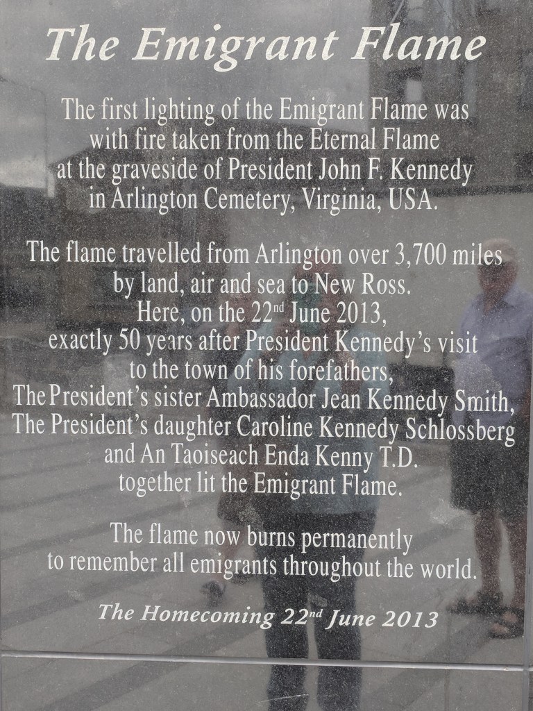Being the recipients of so many good things the Kennedy family of the United States have done, we decided to visit the old homestead. We made our way down a road so narrow Bill didn’t have to worry much about being on the left because there was barely room for more than one car at a time anyway. It was hair raising going around corners, however. We finally arrived at a little visitor center, where we were shown a video, a family tree, and several other displays regarding the American Kennedy’s. Since the Irish Kenedys still live in the same little house, we could not cross the yard to visit there; however, JFK’s cousin went through the trouble of recreating their 1960s living room out in the stable — the same living room JFK himself came to visit when he was president. Running in the living room, on a 1960s looking television, was footage of JFK’s visit to the homestead. We were told that Secret Service agents were crawling all over that little town for a month before JFK’s arrival and that the whole neighborhood was invited to a tea party in his honor.