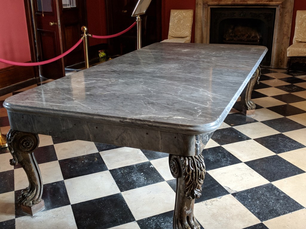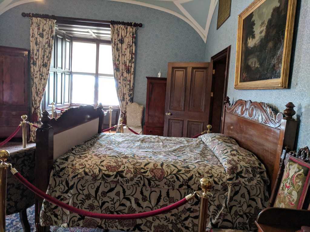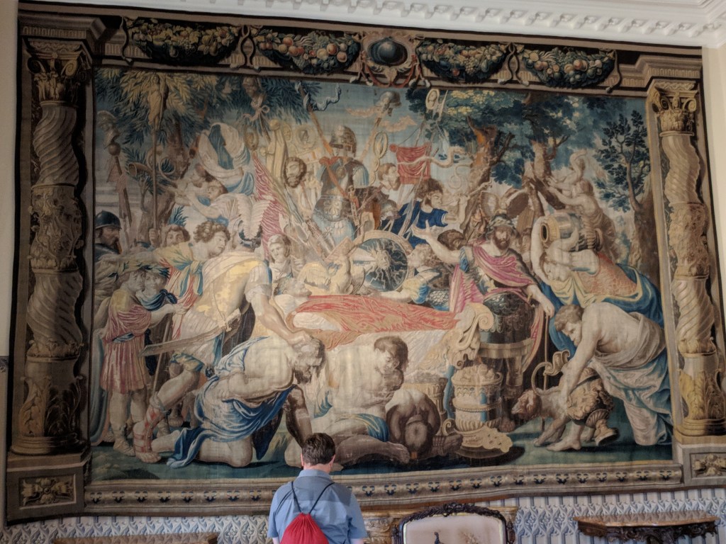 Our favorite room was the Long Gallery. The long gallery was designed for one purpose: to display art. At one time, it had over 200 original paintings. The largest ones are still there, but they are tastefully displayed on the spacious walls. For us, the most interesting work of art was actually the ceiling overhead. The beams of beautiful carved oak made it look a lot like a Viking ship may have looked, and each beam was hand painted with colorful designs.