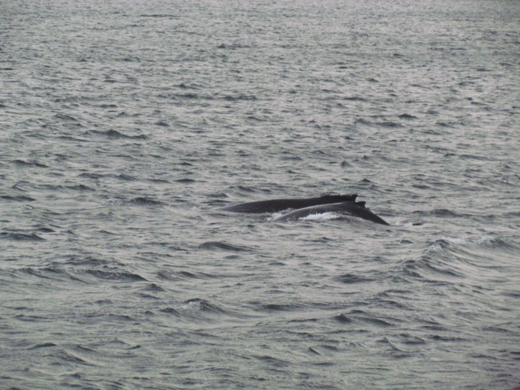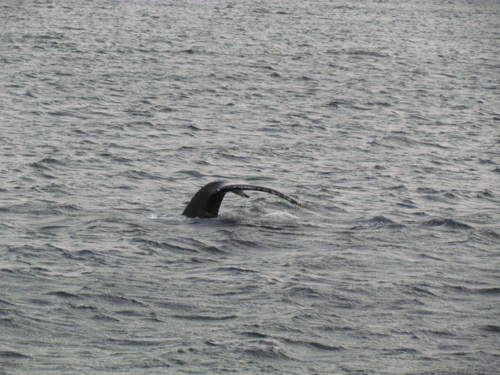 The long, lingering arch of the back would lead to what seemed like nothing… until the fluke would finally appear. The underside of this huge sweeping tail has a different design for each whale. We were told that the fluke was like a fingerprint, marking the uniqueness of each individual whale. We saw one that was completely white, but we sadly did not catch it on camera.