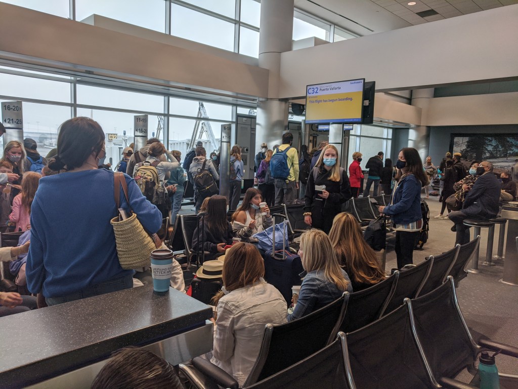 At Denver International Airport, masks and social distancing are required. For someone who has pretty much stayed home for a year, it wasn’t as scary as I thought it would be. However, it wasn’t totally without concern on this busy spring break day. We weren’t the only ones who had decided it was time for an escape, and the airport was hopping!